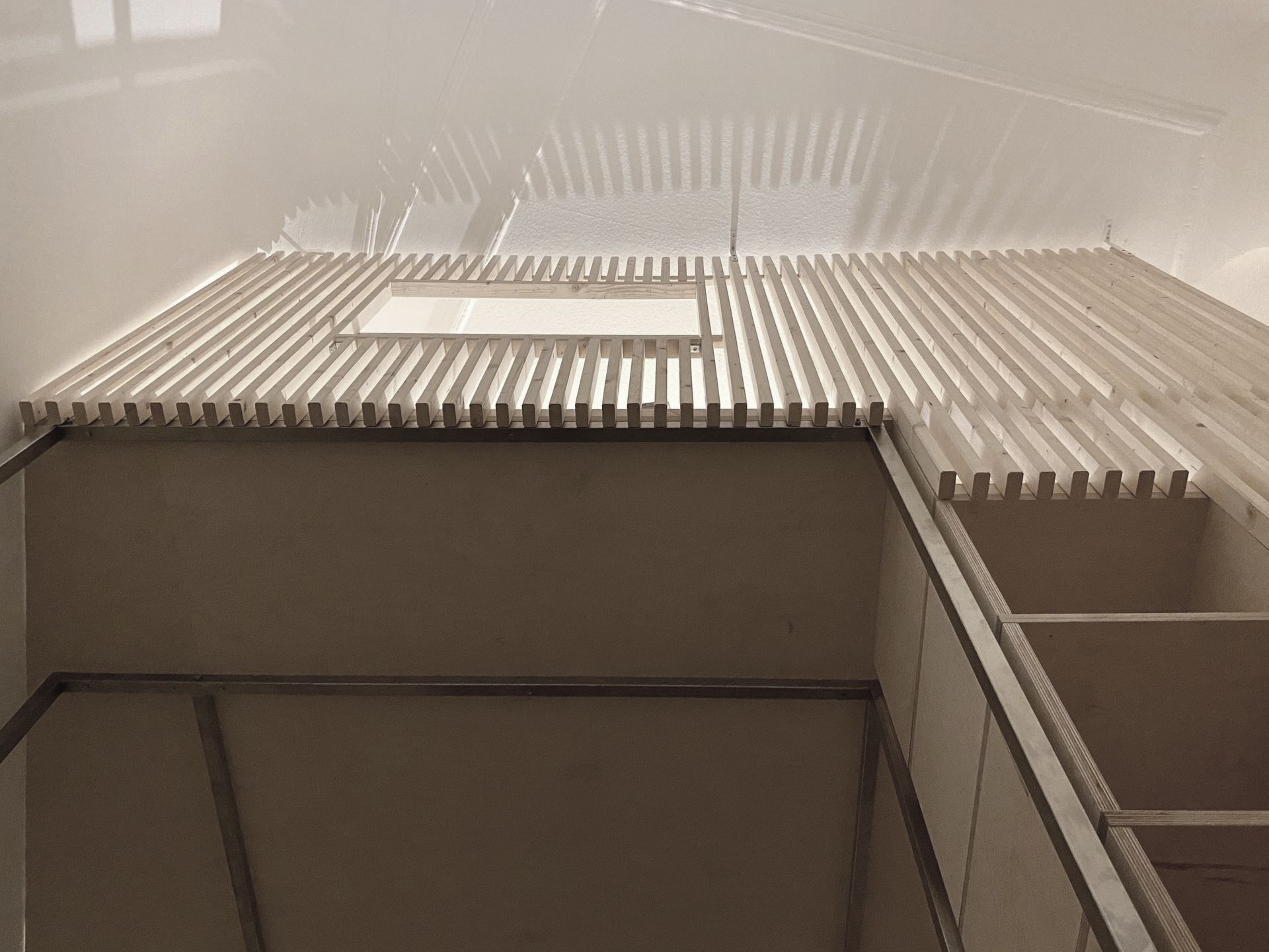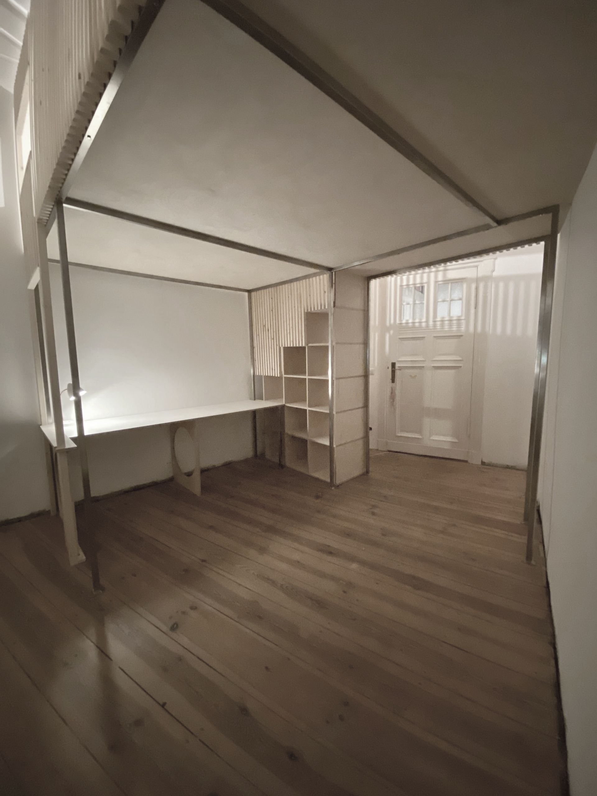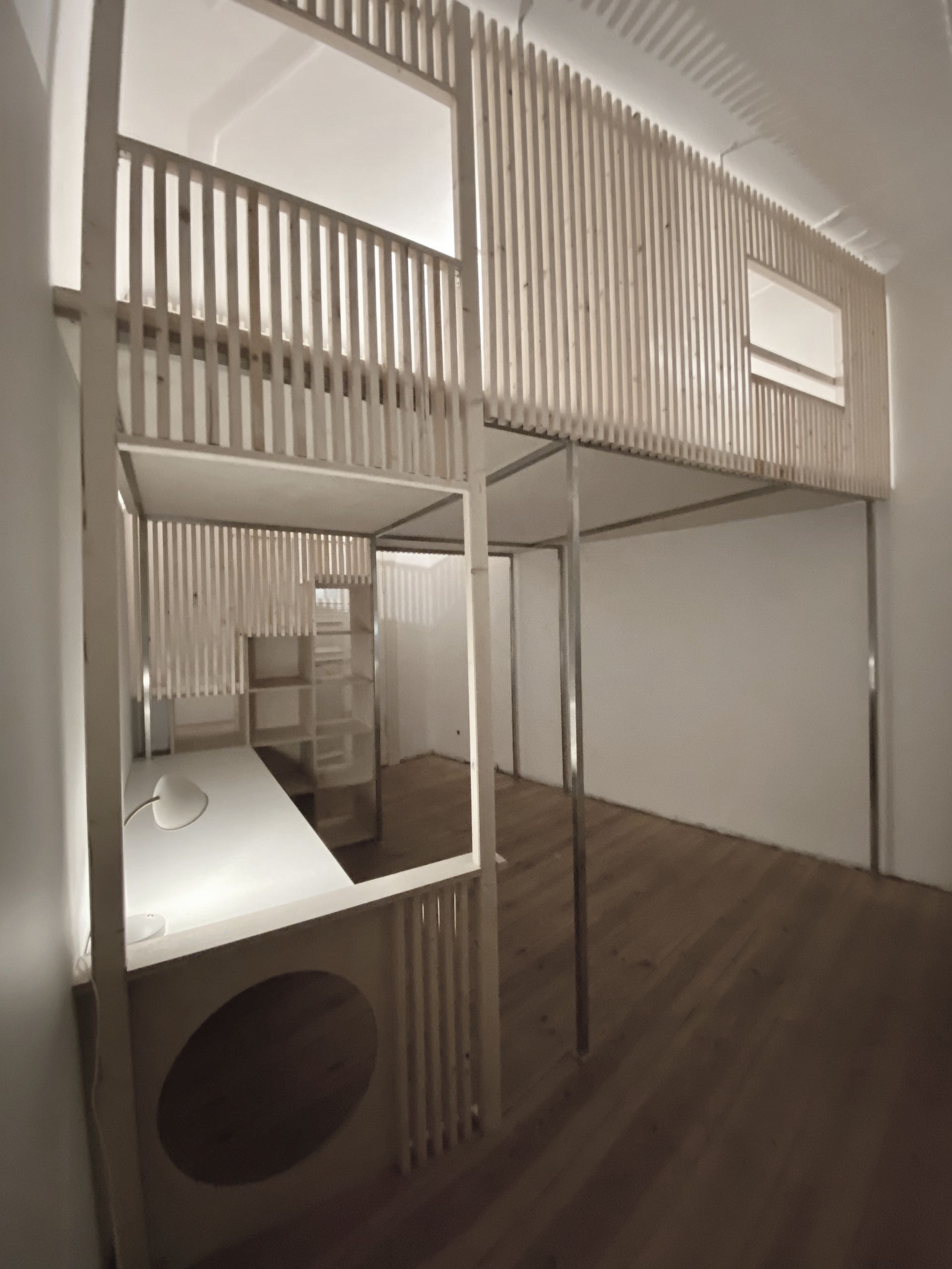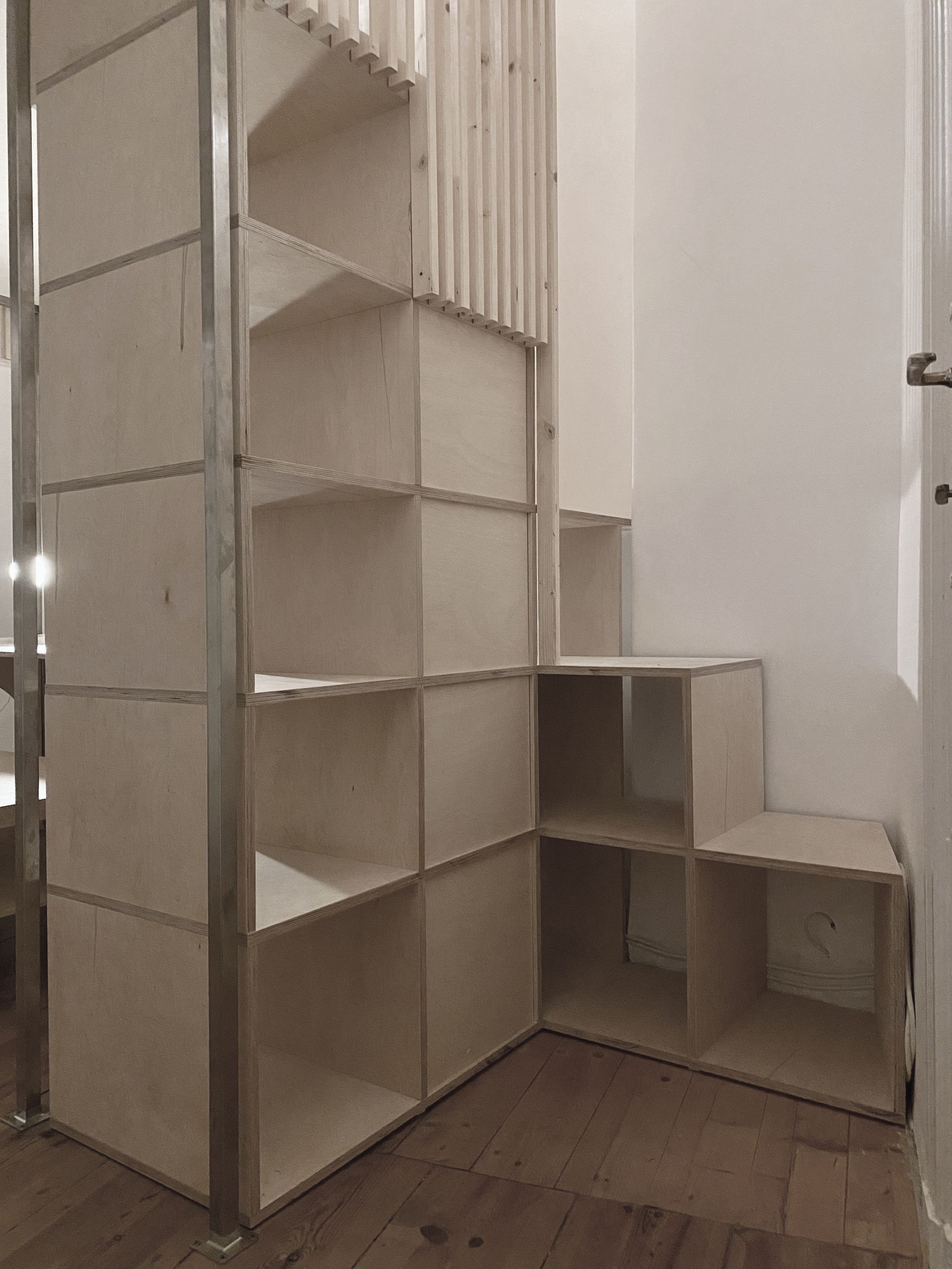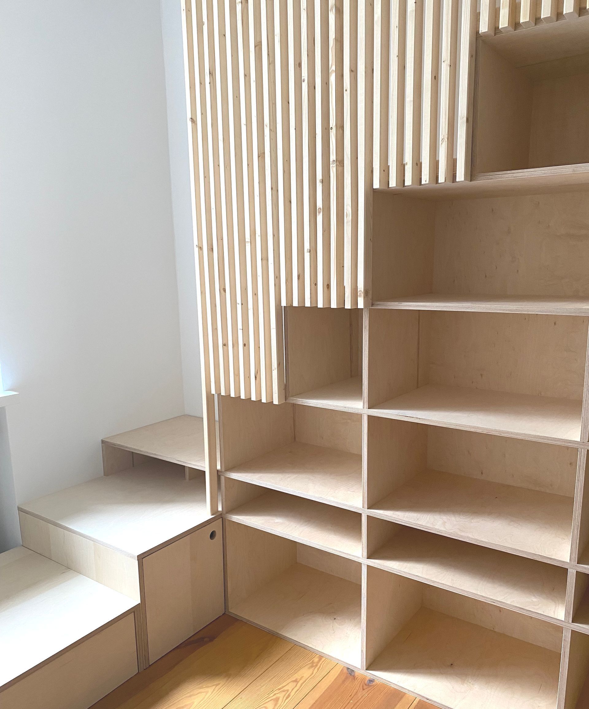 Hochebene mit Bett für 1 Kinder, mit integriertem Stauraum.
